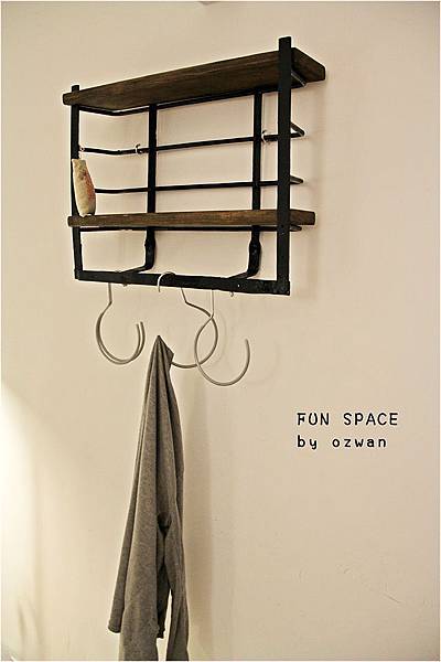 床的另一側,牆面有掛勾小櫃,除了掛衣服,我們都不敢放東西在櫃子上,