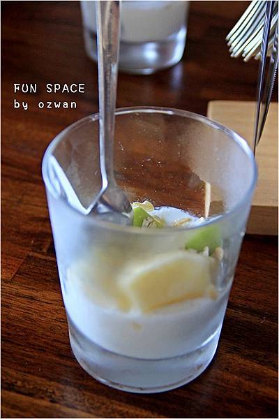 前菜是水果燕麥優格,有蘋果和芭樂,底層全是優格,