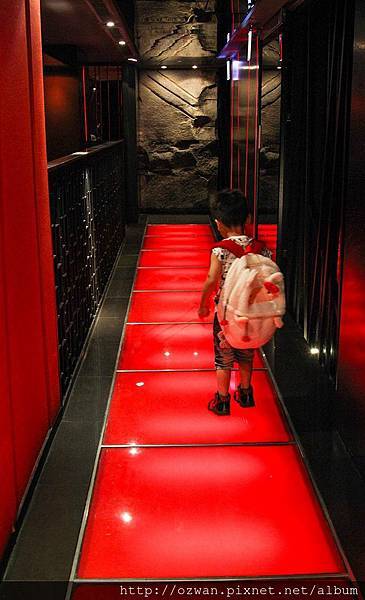 神秘的紅色走道,7表示想去探險,卻又害怕會有怪物跑出來,要我跟著,