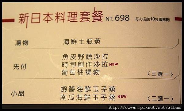 個人套餐=9道料理=698+10%,另有蔬食套餐、12Y以下兒童餐。