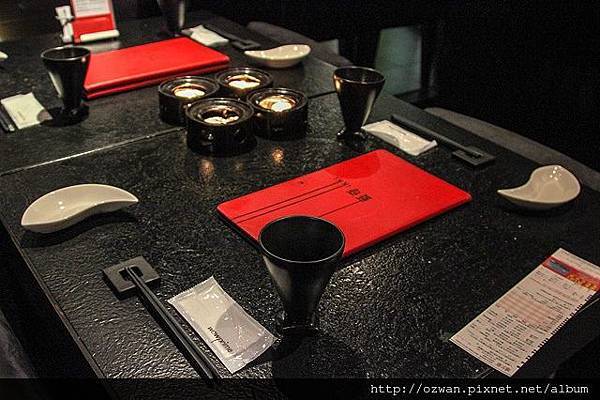 我們的座位,位置都擺好筷子、放骨頭的盤子、紙巾、杯子、MENU、蠟燭、意見表。