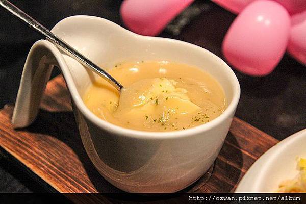的創意。小菜是蕃茄與南瓜漬片,解油膩用。