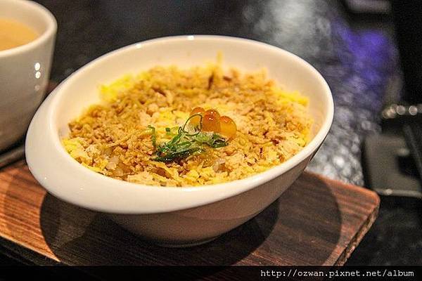 剁得像魚鬆的鮭魚肉,加了蛋絲,最後除了灑蔥花,兼附了幾顆鮭魚卵,
