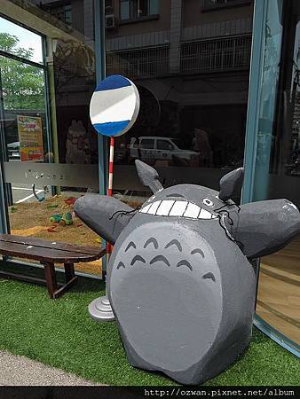 隔壁有一隻保麗龍做的大龍貓,旁邊有長椅,提供給大人、小孩拍照用