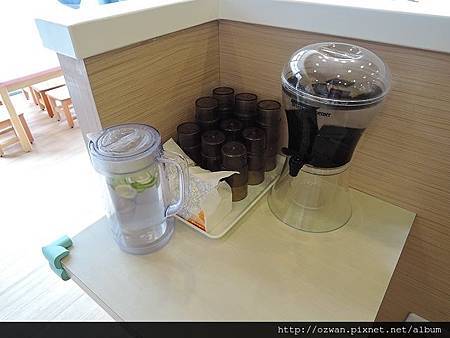 現場提供兩種飲用水,檸檬水、竹炭水,想喝哪種自己來。