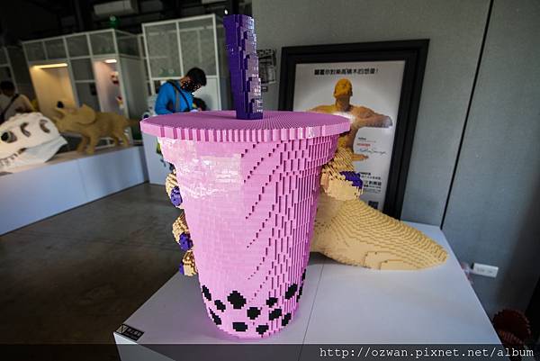 手持珍珠奶茶的作品,是樂高認證大師為台灣特別設計的,唯妙唯肖好逼真。