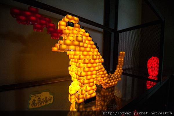 發光積木區之恐龍,而且還是會噴火的亮亮積木在禮品區也有販售。