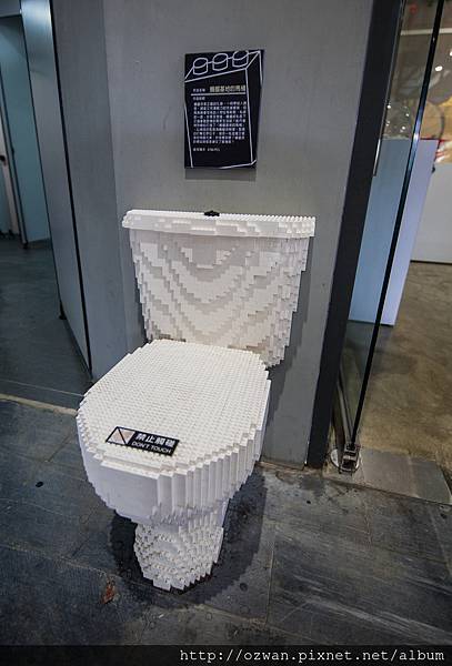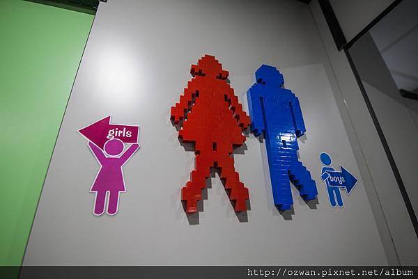 展區外的洗手間,男女圖示不意外以積木拼製,但最厲害的是...