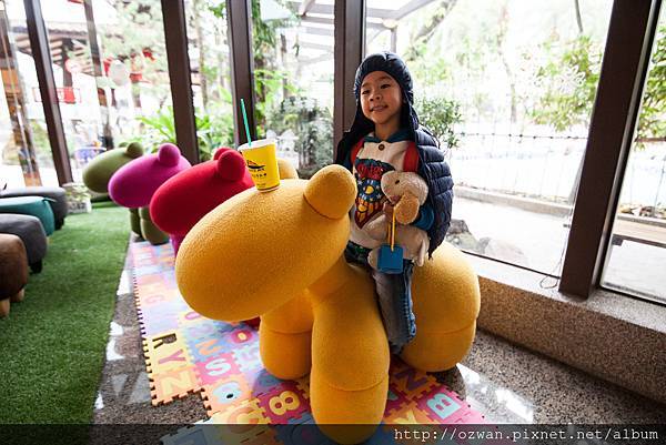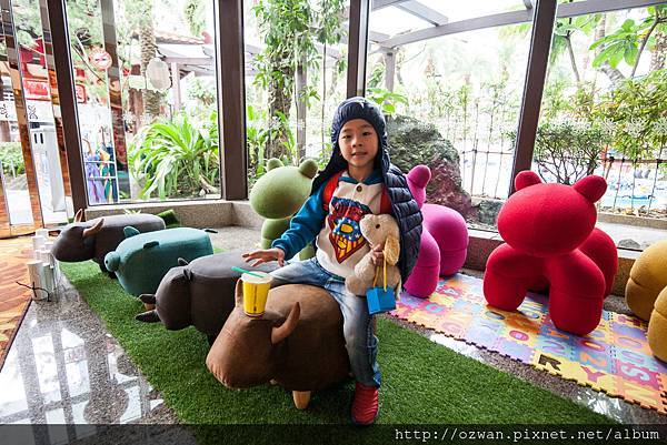 門口有一字排開的動物座椅,準備給孩子們拍照用,727每一隻都去騎,樂得很!